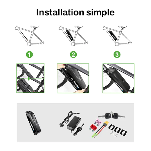 - Installation pratique : Livrée avec un support adapté au cadre, cette batterie s'intègre parfaitement à l'emplacement du porte-bidon, garantissant une esthétique soignée et une accessibilité facile.